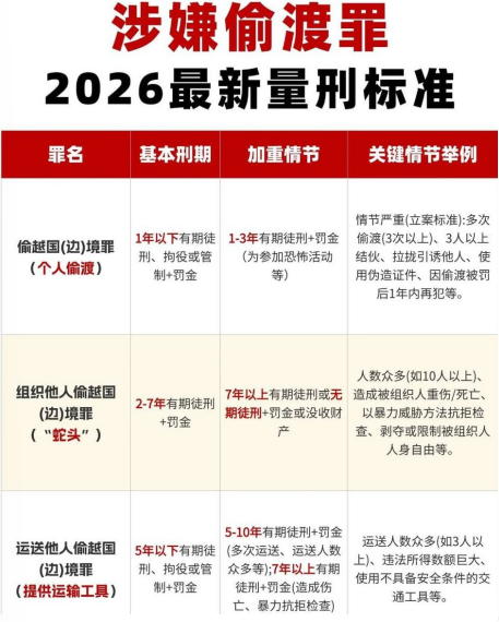 💢涉嫌偷越国(边)境罪,2026最新量刑标准整理。💢